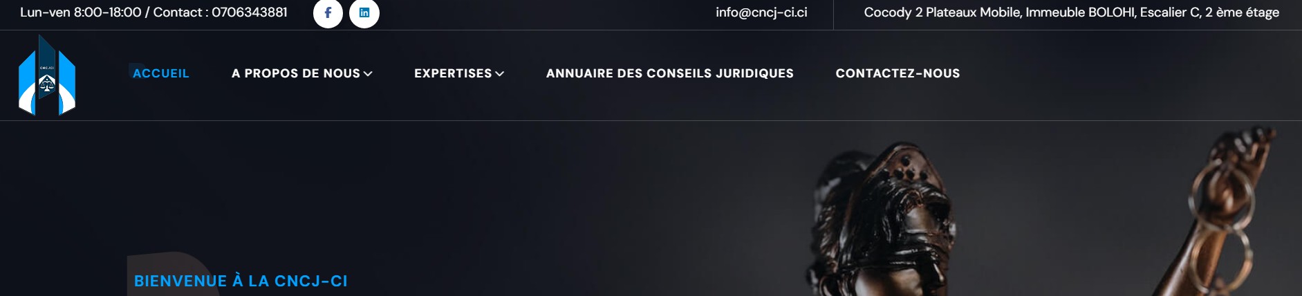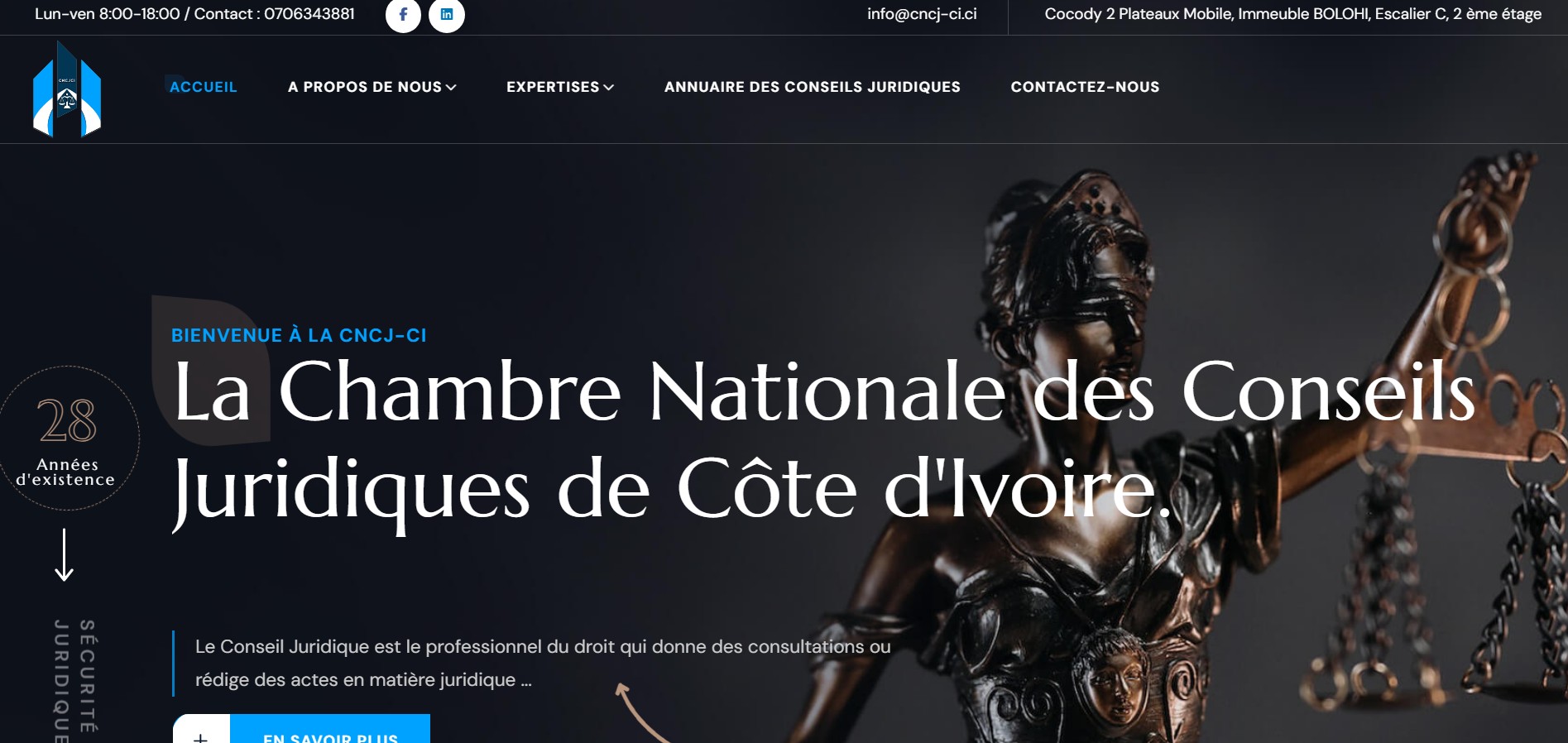 La Chambre Nationale des Conseils Juridiques de Côte d’Ivoire (CNCJ-CI) a confié à Dealtonsite la conception de son site institutionnel officiel.
